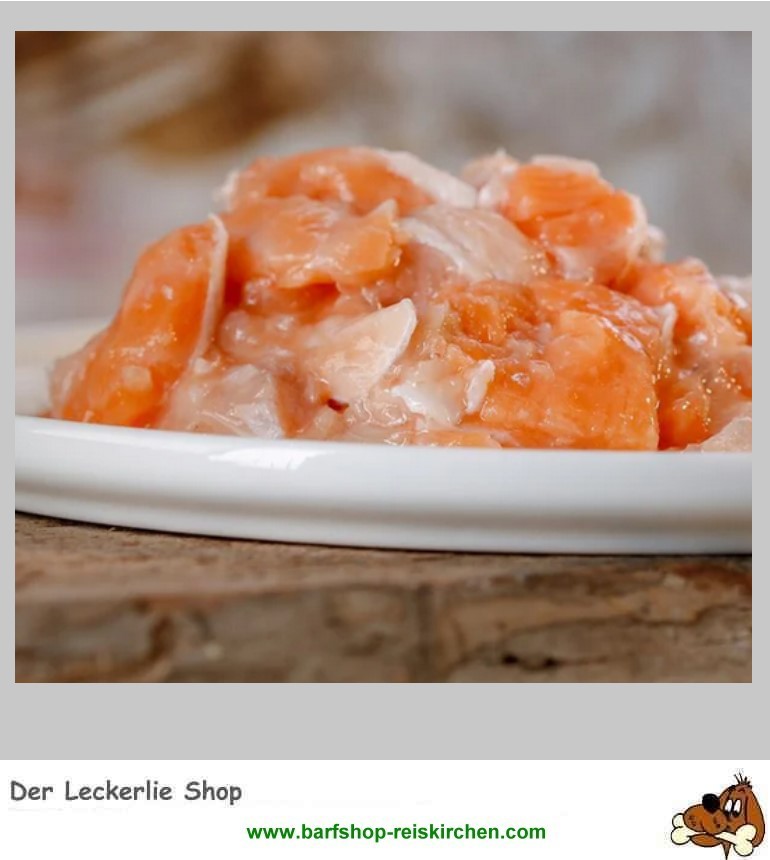 Lachswürfel aus dem Barf Shop sind eine ganz besondere Hauptspeise, aber auch als kleine Leckerei für alle Hunde und Katzen geeignet.